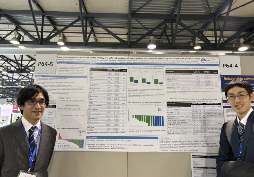 さらに、日常診療に加え、研究活動や執筆活動にも取り組む機会をいただきました。胃癌治療ガイドライン第7版の作成にも携わらせていただいたことは、大変貴重な経験となりました。様々な雑誌や書籍の分担執筆を通じて、自身の知識を整理し、分かりやすく伝える訓練も積みました。論文執筆においては、胃癌治療において世界的に著名な設楽先生にご指導いただき、胃癌関連の論文を2本( “Prognostic and predictive factors for the efficacy and safety of trastuzumab deruxtecan in HER2-positive gastric or gastroesophageal junction cancer.” Gastric Cancer. 2025;28(1):63-73.、”Prognostic Indicators of Preoperative FLOT Efficacy in Locally Advanced Gastroesophageal and Gastric Cancer: Integrating Biomarker Analysis and Clinicopathological Factors.” JCO Precision Oncology. in press)執筆させていただきました。この他にも、食道癌に関するReview論文(”Current landscape of targeted therapy in esophageal squamous cell carcinoma.” Curr Probl Cancer. 2024;53:101152.)を執筆させていただき、また胃癌のトラスツズマブデルクステカンに関するReview論文を現在投稿の準備をしているところです。